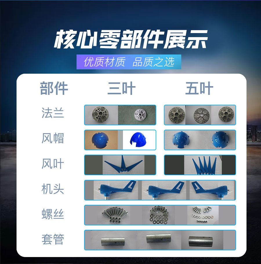 3、風(fēng)葉采用高強(qiáng)度復(fù)合材料,強(qiáng)度高,韌性好,防紫外線,防腐蝕,抗大風(fēng),具有良好的氣動(dòng)性能。
