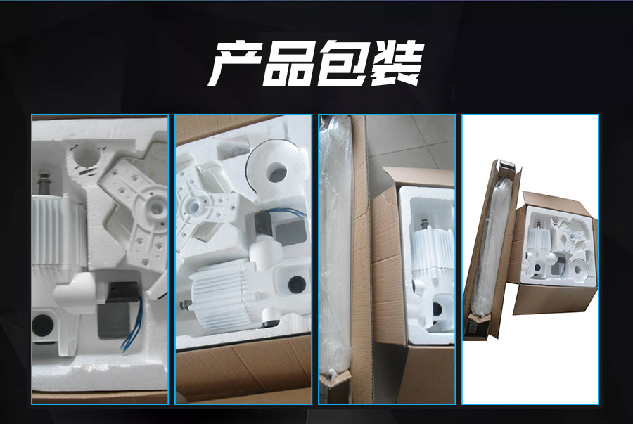 8、采用自動對風(fēng)裝置,使風(fēng)力發(fā)電機自動調(diào)整對準(zhǔn)迎風(fēng)方向,兼顧調(diào)向靈敏性和穩(wěn)定性,風(fēng)力較大情況下發(fā)電機尾翼斜置限速保護風(fēng)機不受損。